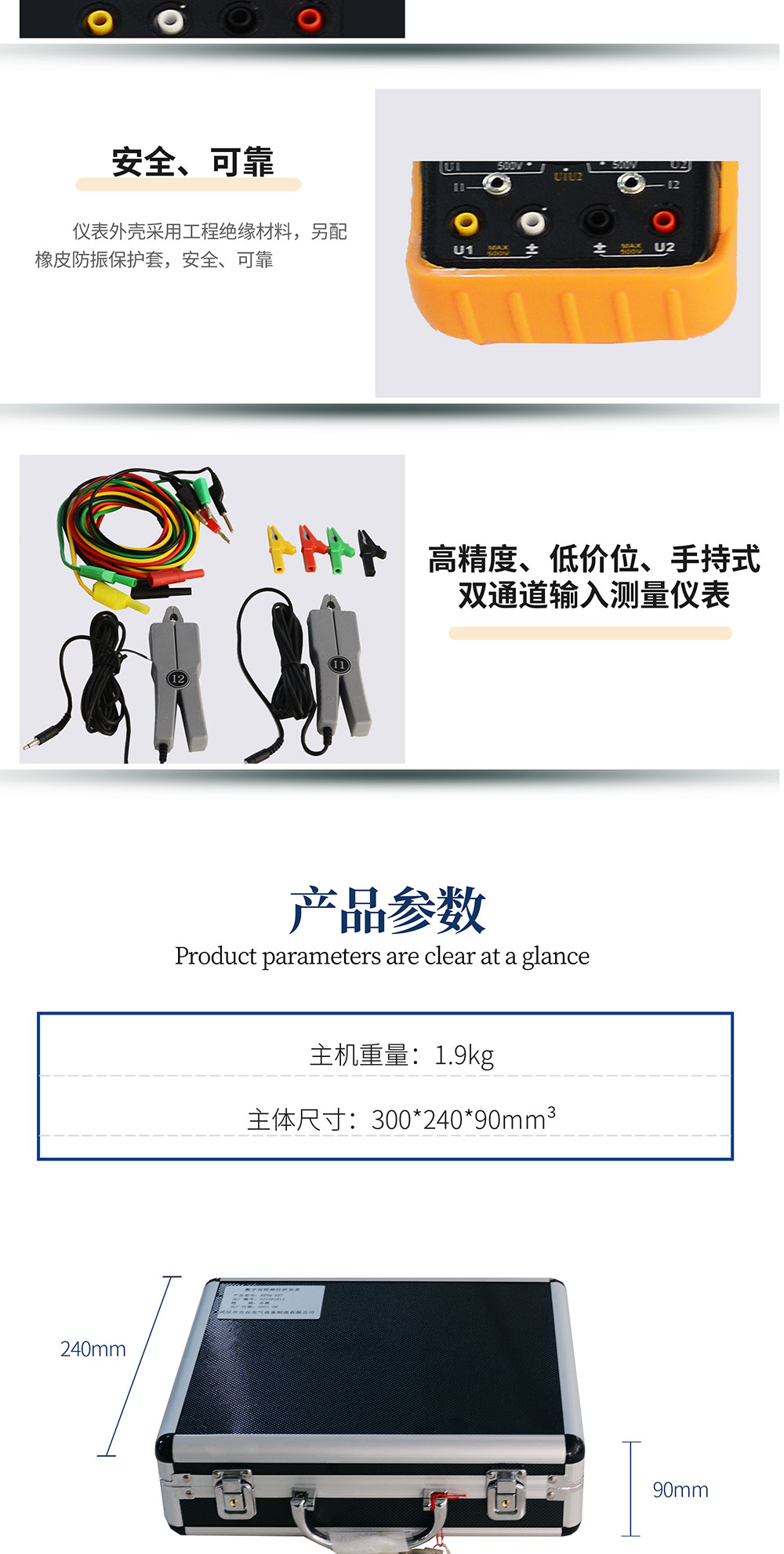 測(cè)U1-I2或I1-U2相位時(shí):10V~500V、10mA~10.00A |